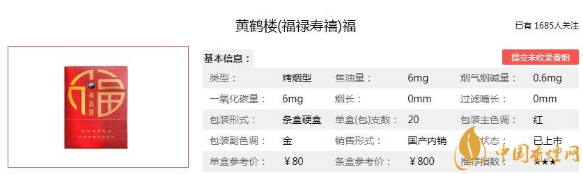 以上就是香煙網小編為大家介紹的黃鶴樓福祿壽禧四款香煙的價格參數,希望為大家提供幫助。想了解更多香煙信息,請關注香煙網!
