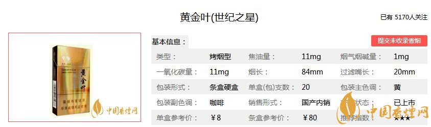 以上就是香煙網小編為大家整理介紹的黃金葉世紀之星香煙的價格表圖一覽,希望為煙民們日后選擇提供幫助。想了解更多香煙知識,請關注香煙網!