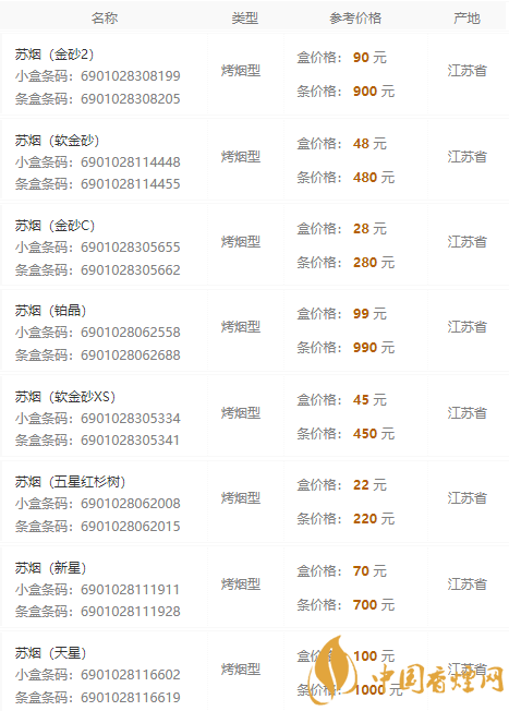 2020蘇煙全部系列價格表
