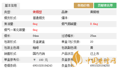 黃鶴樓1916各地價格表