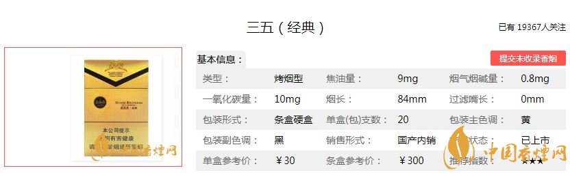 類型 :混合型 焦油量 :6mg 煙氣煙堿量 :0.5mg 一氧化碳量 :7mg