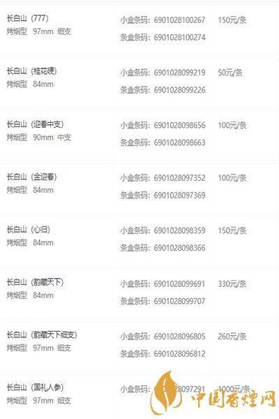 2008年,“長白山”品牌被國家煙草專賣局列為全國20個重點骨干品牌進行考核。長白山系列香煙是延吉卷煙廠的主打品牌。其系列產品主要包括東方神韻、軟紅、硬紅、銀、醇香、長白阿里郎等,是吉林人極為認可的一種香煙品牌。長白山東方神韻更榮獲了2008年吉林省科學技術進步獎一等獎,成為國內低焦油烤煙的成功代表之一。
