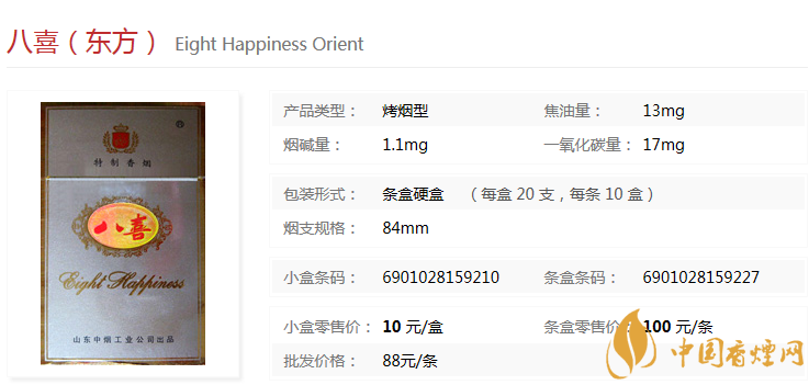 八喜是山東的香煙品牌,這個品牌的香煙可能在山東地區比較常見,他是清香型卷煙產品,曾被評為山東八大名牌之一。今天小編為大家介紹一下八喜香煙的價格表圖以及產品的核心參數,具體如下: