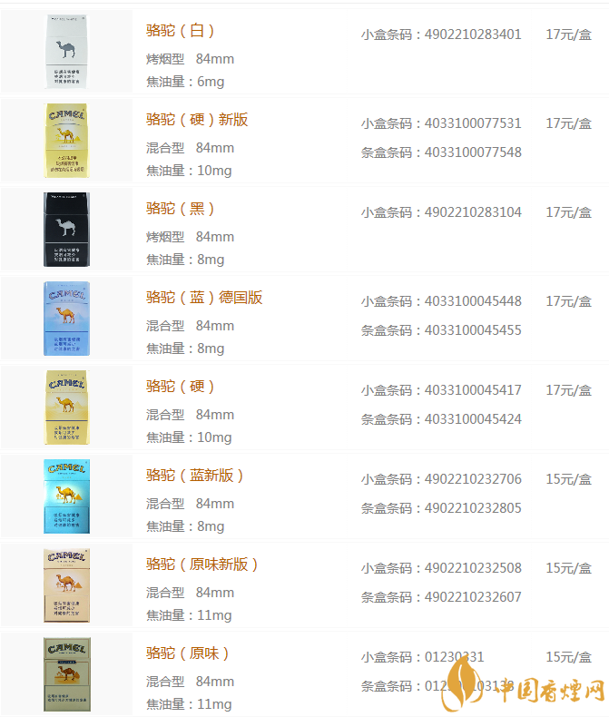 camel駱駝香煙價格表圖 駱駝香煙價格排行榜(20種)