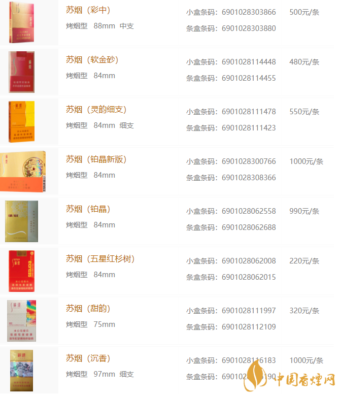 蘇煙2025最新價(jià)格 蘇煙多少錢一包