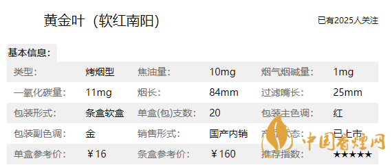 黃金葉軟紅南陽香煙價格及參數一覽2020