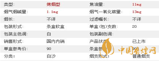 類型 :烤煙型 焦油量 :10mg 煙氣煙堿量 :1mg 一氧化碳量 :12mg