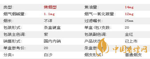 白沙紫和采用白色豎紋卷煙紙,煙絲端切口較平整,煙絲油潤金黃,水松紙采用的是鐳射光柱紙,香味醇正濃厚,渾圓一團,煙氣飽滿,入喉順暢,“醇和”之謂所言不虛。經調查白沙紫和售價為20元/包。