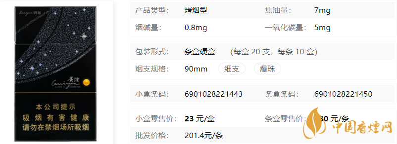類型 :烤煙型 焦油量 :7mg 煙氣煙堿量 :0.8mg 一氧化碳量 :5mg