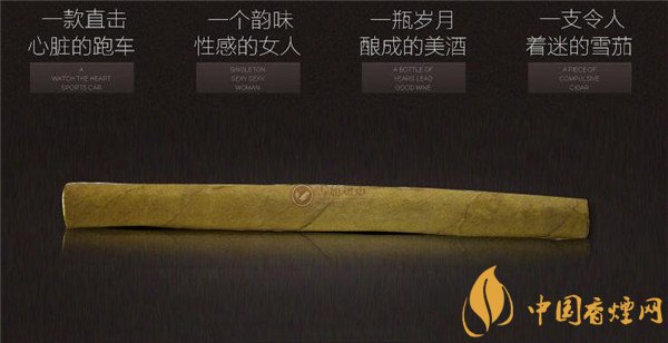這款雪茄煙外觀簡約自然,它采用了木盒裝置,原木色與咖色相得益彰,彰顯其清新自然之感。盒面左下角有一株綠色的煙葉封標,或許是商家在向茄客們傳遞著信息,寓意此款雪茄采用純天然煙葉精制而成。深棕色的茄體修長而又顯堅挺,突出的葉脈紋路清晰可見,茄體底部煙質呈現統一深咖啡色,沒有一點點雜色系,品質是絕無二話之說的。
