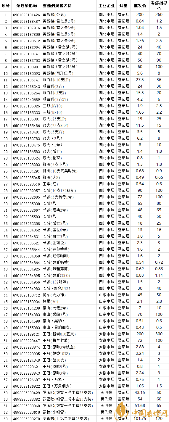 最新國產雪茄煙價格表圖 2025年湖北省雪茄煙價格(上半年)
