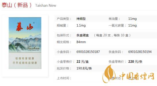 泰山新品煙多少錢一盒價格表 泰山新品煙價格及參數介紹