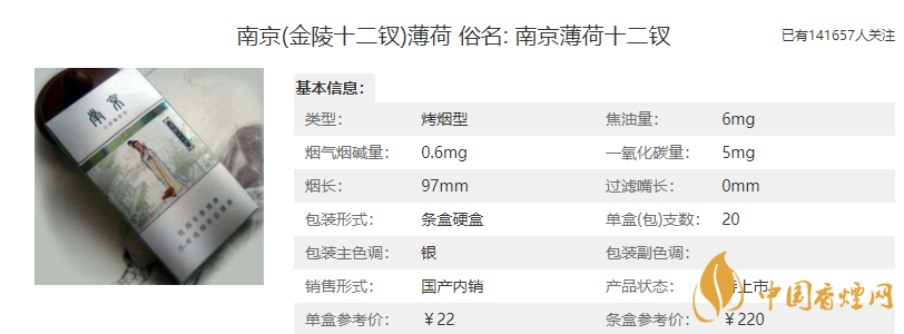 價格:22元/包,綠色包裝的金陵十二釵是涼煙,薄荷味香煙,淡淡的薄荷味和煙香混合在一起味道很好。但是打開包裝之后不要放太久了,因為不是爆珠香煙,所以薄荷味會揮發的!