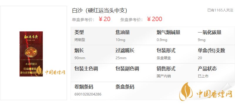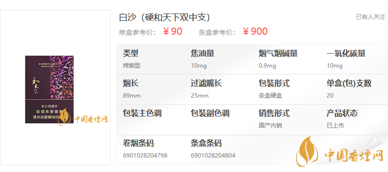白沙中支香煙價格表圖大全 白沙中支多少錢一包