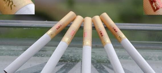 傳統的黃色反光過濾嘴,也被小圓點分成像郵票一樣的小格,有錦繡小條章的那格同樣也有像郵戳的波浪紋。卷煙紙是安徽中煙一貫的橫紋卷煙紙盤紙,煙絲橘黃,香氣帶一點微甜。