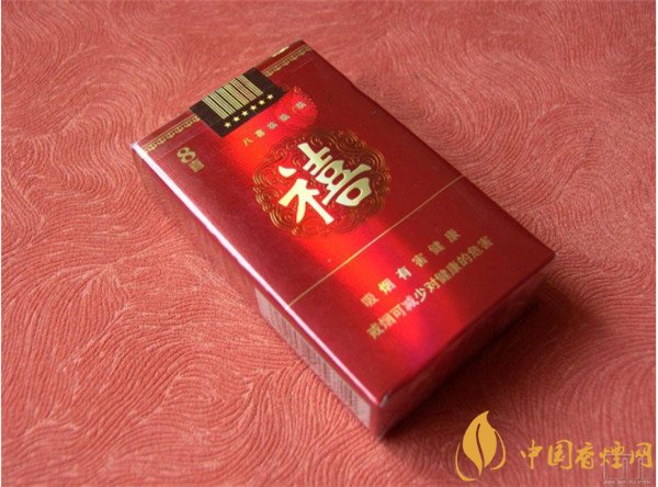 這款八喜香煙的煙盒是大紅色軟包,煙盒正中是一個喜慶的團花,里面是一個淡金色的大“禧”字。左上角是豎寫的“8喜”,中間是“八喜臨門”小字。背面寫了這八句詩,錫箔紙上也有“禧”字水印,封簽上也有“禧”,處處透著喜慶。了解它的外觀我們來看看這款泰山八喜香煙多少錢?據小編調查得知在八喜香煙價格表圖中銷售參考價為18元/盒。