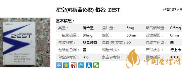 星空香煙多少錢一包 韓國ZEST(星空)香煙價格(10-15元)