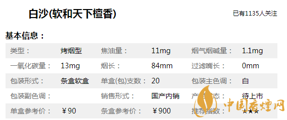 白色和天下香煙價格表和圖片