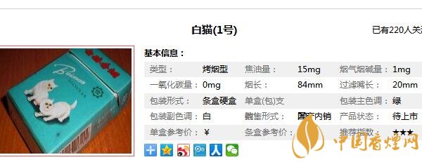 白貓香煙參數信息