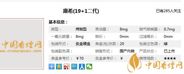 康希香煙多少錢一包(70元) 康希香煙價格圖片
