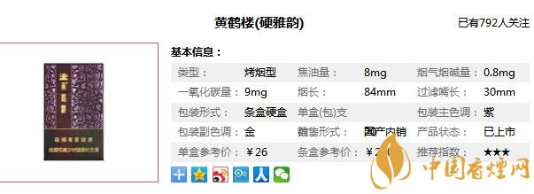以上內(nèi)容是由香煙網(wǎng)小編為大家收集以及整理的關(guān)于,黃鶴樓硬雅韻多少錢一包以及黃鶴樓雅韻硬盒價格圖片相關(guān)的信息,了解更多有關(guān)信息請點擊:黃鶴樓雪茄型香煙價格表。
