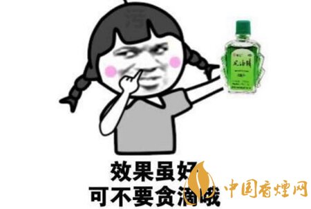 滴過風油精的香煙,口感絕對不一樣,此時已經(jīng)完全感覺不到香煙帶來的刺激了,反而是濃濃的薄荷的清涼。薄荷可以提神醒腦,直接將直沖腦頂?shù)臒煱a打的煙消云散。如果你意志堅強也不愿意浪費已經(jīng)點燃的香煙,就繼續(xù)抽,因為你已經(jīng)感覺不到煙草味,嘴里只有苦苦的味道了(除非你喜歡這個苦味)……