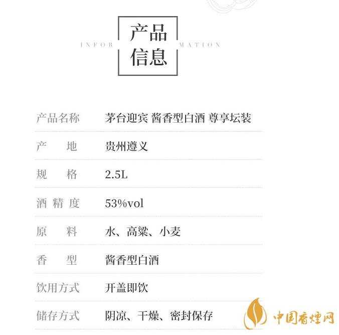 以上是小編整理的有關茅臺迎賓尊享壇裝多少錢的最新信息,相信在座的朋友們聽到小編的介紹有所認識,但是小編在這里提醒一句以上信息整合于網絡,更多最新最實用的資訊請持續關注香煙網。