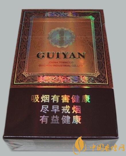 包裝金色為主,棕色為輔,正面包裝金色框內寫著貴煙兩字和logo,蒼勁有力,四周條紋與之搭配,彰顯貴煙的浩然正氣。有貴州及某些少數民族的感覺和特點。下面寫著吸煙有害健康,盡早戒煙有益健康的警示性標語。整體形象設計高檔,高貴的外觀自成潮流一派。