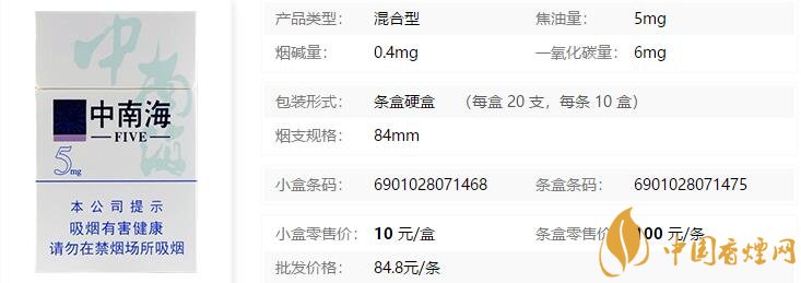 一、中南海(5mg)香煙價(jià)格