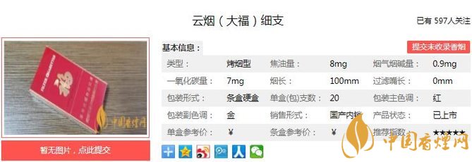 三、云煙大福細支香煙參數