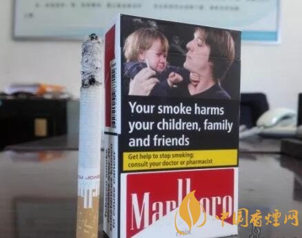煙盒左右側(cè)面各印有黑框樣式的警示語句,也是后期歐盟版本萬寶路的煙盒包裝特點。