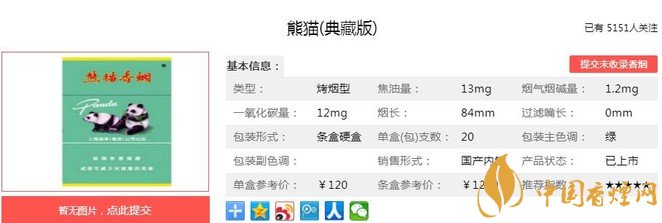 三、熊貓(典藏版)香煙參數