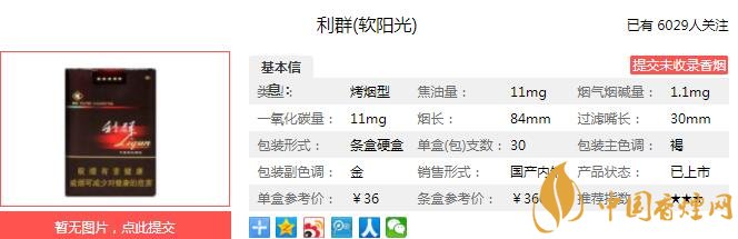 三、利群軟陽光香煙參數(shù)