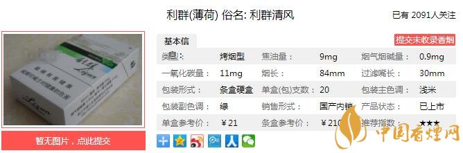 利群薄荷俗名利群清風(fēng),這煙的包裝給人一種清新的感覺,煙香淡雅清新,涼意絲絲,比較舒適。就像這款產(chǎn)品宣傳語所說的一樣:“如雪山與清流,如云霧與樹林,淡雅的綠傳遞清新,薄荷的涼意,讓吸味充滿愉悅清潤”。經(jīng)香煙網(wǎng)小編市場(chǎng)調(diào)查利群薄荷售價(jià)為21元/包。