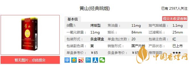 三、黃山經典皖煙香煙參數