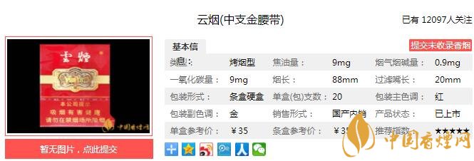 云煙中支金腰帶價(jià)格 云煙中支金腰帶參數(shù)及口感分析