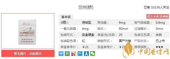 以上便是由香煙網小編為大家介紹的關于蘭州橋細支煙價格 蘭州橋口感及參數分析的相關信息,想要了解更多有關內容請點擊:金圣滕王閣·回味無窮多少錢一包 回味無窮口感及參數介紹