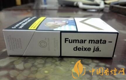 正面的包裝設計,也是目前歐盟版本的標準式樣。翻蓋上的文字為葡語,內容自然是關于吸煙有害健康了。