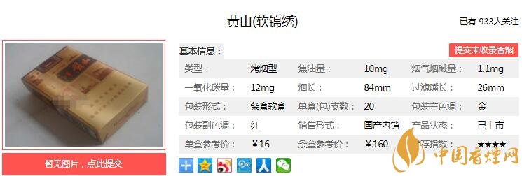 以上便是由香煙網(wǎng)小編為大家介紹的關(guān)于黃山軟錦繡好抽嗎 黃山軟錦繡價(jià)格及口感分析的相關(guān)信息,想要了解更多有關(guān)內(nèi)容請(qǐng)點(diǎn)擊:白沙和天下有幾款 5種和天下香煙口感分析