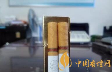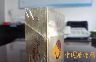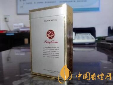 又是款淺金色調為主、修飾以深色金邊框的包裝設計,有些像芙蓉王硬黃的造型。圓圈中的金龍造型,更像是抽象畫法的,沒有真龍或者其它帶有龍的圖案香煙的豐滿與霸氣。