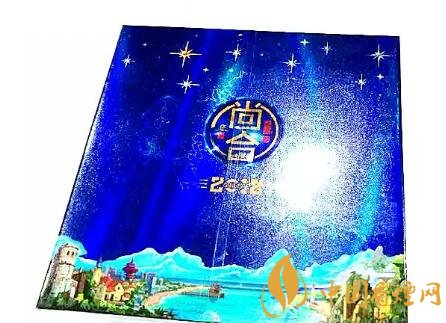 這款泰山(尚合)的規格是每盒20支裝的異型包裝,寬大的盒體拿在手中頗有分量,充滿了高端產品的質感與體面;從包裝的開盒方式看出此款異形包裝是對開盒設計,包裝整體色調以深邃的海藍色印映著點點星光,泰山標識與“尚合”左右呼應,下部青島標志建筑棧橋的鐳射圖案豁然于濤濤海浪之上,其整個包裝風格彰顯低調、奢華、上檔次的上合精神。