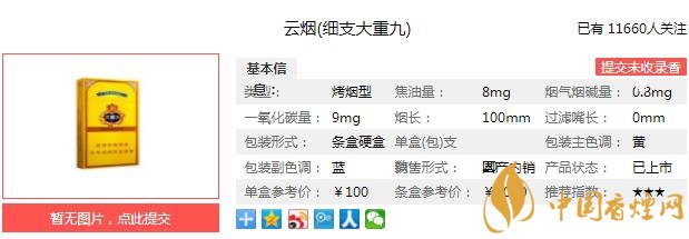 云煙細支大重九價格及口感 高端細支產品的代表作