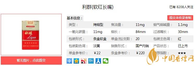 在配方上,選擇國內外香氣足、煙堿適中、焦油含量低的優質煙葉,精心配比,在化學成分比例協調的基礎上,配合特殊的優質進口香精香料,保證其突出的香氣風格和特征。經香煙網小編市場調查利群軟紅長嘴售價為22元/包。