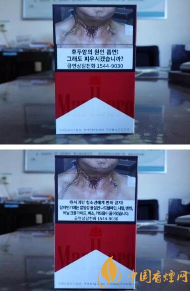 韓國的警示圖片,這是第一次見識到。警示圖文的設計,也與歐美等樣式差不多。都是圖片、吸煙有害健康,以及控煙熱線等內容。從圖片的樣式來看,與東南亞一些國家和地區差不多,看起來還不算過于恐怖和惡心。