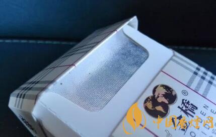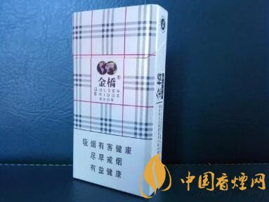 煙盒的高度是97mm。正反兩面的圖案設計相同,都是有如床單或者臺布樣式的畫面。九宮格樣式的中間,印制有金橋品牌香煙的LOGO,以及英倫奶香的名稱。從警示語句內容來看,是大字版本初期款,2016年10月改版前的款式。