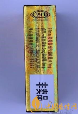 煙包兩側分別是生產企業和理化指標,從97mm細支規格,0.7煙氣鹽堿量、8mg焦油、5mg一氧化碳的指標上來看,感覺吸食勁頭應該比較柔和。