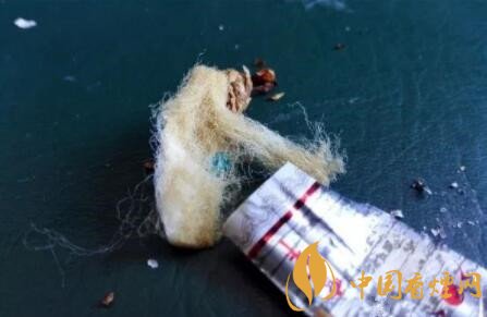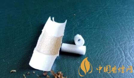 剪開鏤空樣式的過濾嘴,會發現有一層薄薄的黃色紙張,附著于過濾嘴紙張之上。鏤空過濾嘴的長度,約為6mm。