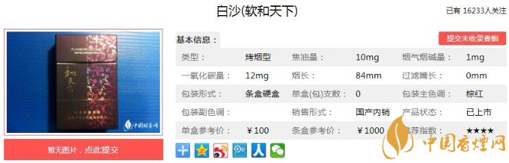 一、白沙(軟和天下)價格