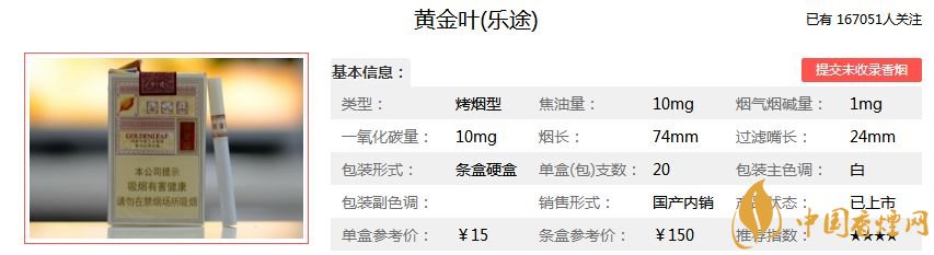 看完對黃金葉樂途香煙的介紹,相信你對這款香煙有了更深的了解。想查詢更多香煙信息,請點擊:黃金葉好抽的5款煙推薦 最后一款性價比最高