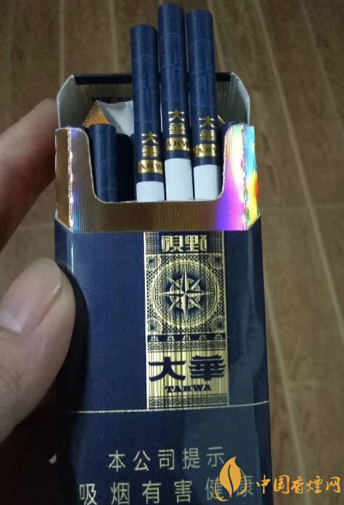 阿里山大華視野香煙的外包裝是非常精美的,且這個包裝還得了金獎!包裝主體采用深藍色做主基調顏色,以太陽眼作為煙標,深藍色搭配金色給人一種奢侈而又高貴的感覺!